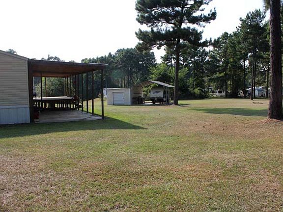 **JUST REDUCED** 2 Bedroom 2 Bath, 1120 square foot mobile home that sits on two acres of land in Dogwood Shadows Subdivision. This property is within walking distance (2 blocks) of Shadows Landing Marina and boat launch. Property is unrestricted and could also be used as a commercial property. Large spacious yard with plenty of room for family and friends to spend time on the lake. Large covered front porch and back deck.. There is a covered 14x22 ft concrete carport. Metal storage building/shop that has a roll up door on the front for easy access. Attached covered outdoor kitchen, and covered space with room for a camper/rv or other recreational vehicle to be parked. The outdoor kitchen has sinks, a stove with oven, and has hot and cold water. There are connections for two RVs adjacent to this building-one at the back of the shop, and one at the side of the RV parking area. Great for having additional family come to the lake to spend time. Both of the RV sites have connections that are already attached to the septic system. Home has a kitchen with eating area, a living room with high ceilings, laundry room, two bedrooms, and two full bathrooms. The Master bedroom is large with a very large walk-in closet. The Master bathroom has a separate shower, single vanity and a large jetted bathtub. The second bedroom is also large and has a walk-in closet. The second bathroom has a bathtub/shower combination. The stove/oven, refrigerator, and venthood/fan will remain with the home. All the furniture inside will also remain. This property has a septic system, is on CLECO electricity, and South Toledo Bend Water system. It is perfect for anyone wanting either a permanent home or a camp at the lake.