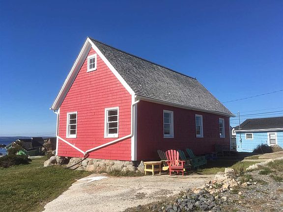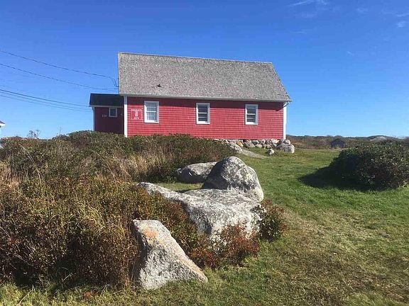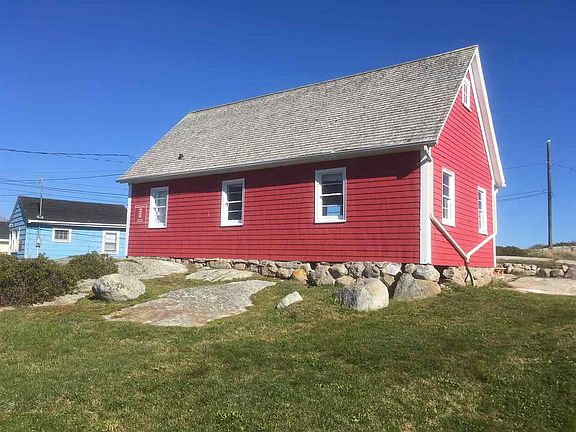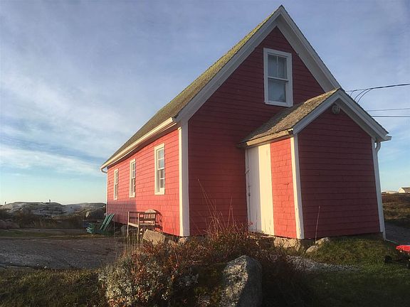 Nestled in the heart of Peggy's Cove, the iconic red schoolhouse has been a fixture in the village since 1858. Where generations of children once received their lessons, the vaulted area of the building now serves as a fantastic living space for summer guests, with sleeping quarters directly above in the half loft. Set back from the road and perched on a hill, the coastal views from every window are spectacular. Featuring a total of 2.6 acres of oceanfront land, including 251 feet of shoreline, the property also includes two additional buildings: a 2-storey residence with main level retail space (civic #110); and a small cottage (civic # 112, in need of TLC) with great potential for seasonal rentals.