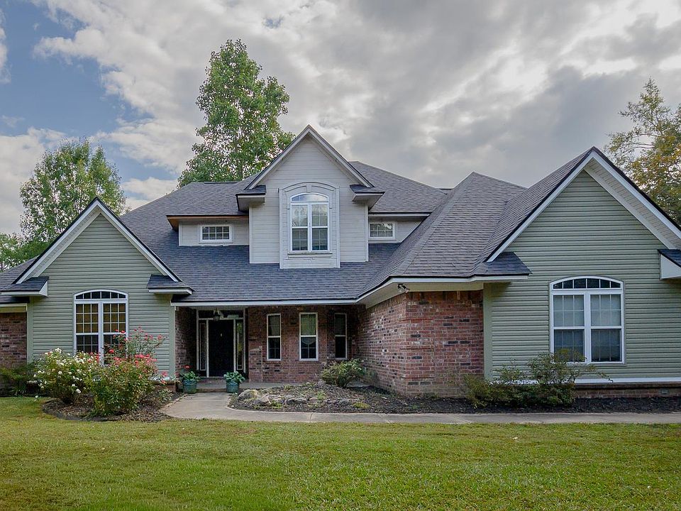 BEAUTIFUL home brimming with features and ideally located in the Mena Lake area! The home includes vaulted ceilings in the living room, open concept kitchen (complete with attractive cabinetry granite countertops, and stainless steel appliances), a lovely breakfast nook overlooking the fenced deck and POOL, & 2nd seating area with a gas fireplace! Primary suite is located on the 1st floor, including a walk in closet, double sinks in the bathroom, separate shower and jacuzzi tub! The 1st floor also includes a formal dining and separate office. The lofted 2nd floor has 3 spacious bedrooms, (two with a connecting Jack and Jill bathroom) and the other with its own en suite bathroom and built in desk & storage! There is ample additional storage throughout the home, large pantry, and a laundry room with a sink, countertops and storage cabinetry! Appliances new in the past 2 years including water heaters and AC units! New luxury vinyl on the main floor, & Brand New exterior siding and roof! Complete with 2 car garage, additional 1 car garage that could be used as a shop AND a FEMA approved storm shelter! All this sits on over 2 acres! A private oasis just minutes from town!