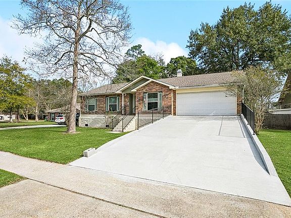 This beautifully updated raised property in Slidell blends charm, comfort, and style in all the right ways. From the classic brick exterior with fresh trims to the wide front steps that invite you inside, every space feels open, bright, and thoughtfully finished. Step into the oversized living room that stretches under a vaulted ceiling with a center beam. Sunlight fills the space and highlights the rich plank floors. The brick fireplace creates a warm focal point and sets the tone for cozy evenings. The open layout carries you into a fresh, modern kitchen designed for everyday living. White shaker cabinets, granite counters, stainless appliances, and a bold black subway tile backsplash create a clean and polished look. The breakfast area sits against a wall of windows that overlook the backyard so you get a peaceful view with your morning coffee. The private primary suite feels like a retreat. It features a barn door that leads to a stylish bathroom with double vanities, warm wood cabinetry, and a custom tile shower with a recessed niche. Step through the French doors and enjoy direct access to the covered back deck. The additional bedrooms offer generous space and flexibility for guests, work, or play. Outdoor living is effortless here. The large covered porch is perfect for grilling or relaxing. The fenced backyard is wide and open with room for pets, gatherings, or future additions. A storage shed helps keep everything organized. Located minutes from I 10, I 12, and I 59, you are connected to shopping, dining, and schools in a highly sought after district. Renovated, move in ready, and full of character, 120 Pine Cr is the kind of home that makes life feel easy and enjoyable.