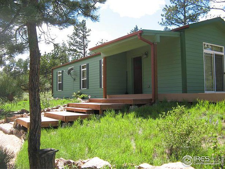 PRICE IMPROVEMENT Located in Piney Knolls subdivision just outside of Red Feather Village, this 840 sq. ft. 2 bed/ 1 Bath on a beautiful 1 acre lot abuts private land. Close to National Forest and numerous private and public lakes while just 20 minutes to the Poudre River. Unique modular built in 2010, well-maintained with 10 x 12 storage shed, and new oversize two car detached garage with power to spare. Nice decks and landscaping make this the perfect weekend getaway or year-round home like current owners. Walk to shopping in the Village. Property served by well and septic with leach field. Easy year-round access -- come and enjoy the mountains of Red Feather Lakes and all this area has to offer. Seller will provide $5,000 concession allowance for interior paint and carpet.