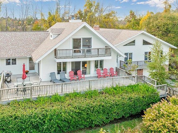 Don’t miss the chance to own a private retreat on the stunning shores of Lake Champlain! This bright, expansive home offers space for living and entertaining. With 288’ of lakefront, a dock and mooring, you’ll have easy access to activities all year. Set on 2.45 acres with fruit trees, mature shrubs, and perennials, the property offers year-round beauty. The main floor has an updated eat-in kitchen with granite countertops, custom cherry cabinets, high-end appliances, and doors to the back deck. A butler’s pantry with soapstone counters and sink provides additional prep and storage space. The dining/living room has a gas fireplace, perfect for winter nights, while offering lake views and deck access for outdoor living. French doors lead to the great room, where soaring ceilings, built-ins, and expansive views steal the show. A 2-sided wood-burning fireplace anchors this space, complemented by a sunroom with views of the landscaped back yard. This floor also offers 4 bedrooms and 2 bathrooms, including a primary bedroom with lake views and balcony. Upstairs, another large bedroom features balconies, lake views, and a full bath. The lower level includes a spacious media room, a ¾ bath, a library with built-in bookcases, and an office or craft room. There’s also a large laundry room and abundant storage space. This Lake Champlain home is a rare gem, blending elegance, spaciousness, and natural beauty into one extraordinary package. Make your dream of lakefront living a reality!