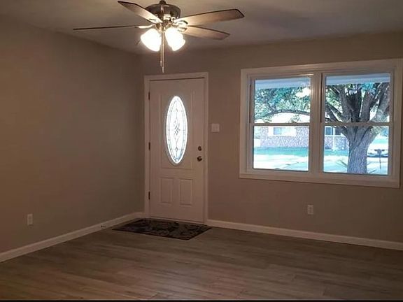 Located just 10 minutes from Fort Polk and only a few minutes from both the Junior High and High School, this remodeled 3-bedroom, 2-bath brick home sits right in the heart of Leesville. Just off of Alexandria Highway for easy access to Alexandria and Leesville. Inside, the home features waterproof flooring throughout and a kitchen fitted with custom cabinets and like-new stainless steel appliances including a fridge, dishwasher, stove/oven, and microwave. Off the kitchen area, a sliding glass door leads to a screened-in back porch, great for relaxing without the bugs. There's a bonus room with French doors that works well as a den, home office, or extra living space. The guest bathroom has a tiled shower, while the primary bathroom offers a stand-up shower. Each bedroom comes with ceiling fans for added comfort. Out back, you'll find a fenced-in yard along with a utility shed for extra storage. The home offers about 1,650 square feet of living space, and pets are allowed.