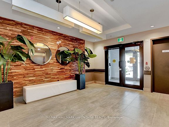 Welcome to Petrie's Landing! This spacious and thoughtfully designed 2-bedroom condo combines modern comfort with a fantastic location. Enjoy effortless access to transportation and the beautiful Ottawa River trails just steps from your door.The bright, open-concept living and dining area features engineered hardwood flooring, California shutters, and sliding doors that lead to your private terrace - perfect for morning coffee or evening relaxation. The kitchen boasts granite countertops, a breakfast bar, stainless steel appliances, and a stylish backsplash.The generous primary bedroom includes a luxurious ensuite with a soaker tub, separate shower, granite counters, and ceramic tile flooring. A second full bathroom with matching finishes conveniently connects to the in-unit laundry room.Nestled on the quiet side of the building, this condo is surrounded by greenery and even has a small park right out front. A wonderful blend of nature, style, and convenience come see it for yourself!