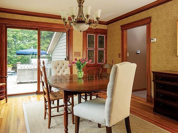 Well maintained Farmhouse Colonial in Angier School District with nine bright and airy rooms including four bedrooms, and two and one half bathrooms. Main level features a welcoming enclosed heated sun porch stretching the length of the front of the house, living room complete with gas fireplace, dining room with built-in china cabinet, full bathroom/laundry room, and kitchen. Second level features four good sized bedrooms all with generous closet space, and an additional full bathroom. The lower level has been partially finished to make a great playroom or office space, still leaving ample storage room in the unfinished area. The front and private fenced-in backyard features beautifully landscaped gardens and trees that add to the serene and delightful home. The backyard features an inviting deck with a pergola, bluestone patio, vegetable garden and a handsome shed for storage. Minutes to Waban Sq., Angier School, library, NWH and T. Easy access to highways.