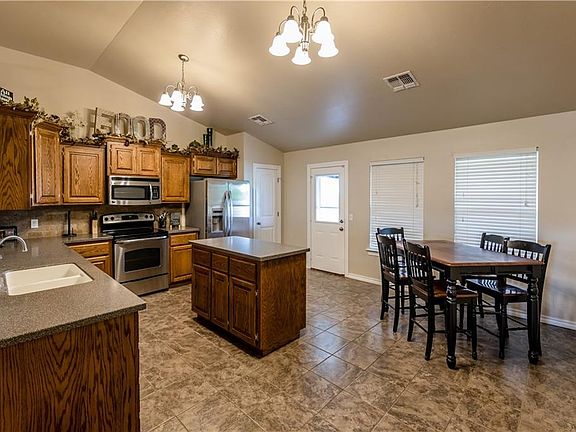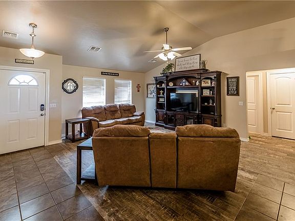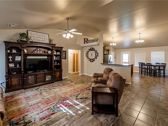 This Home Features A Split Bedroom Floor-plan, Open Concept & Country Views! So much to love about this home. You're greeted with vaulted ceilings, new wood look tile flooring and lots of windows allowing for lots of great natural light. Huge kitchen with solid surface countertops, stainless steel appliances, pull out drawers in lower cabinets, large island, pantry, bar seating and dining space. Enjoy lots of time in this east facing backyard w/ covered back patio, fenced yard and non obstructed country views.