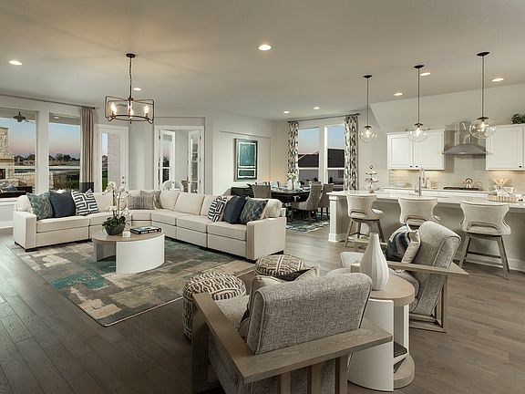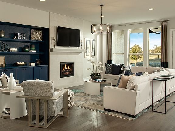 The Richmond is a spacious open living one story family home that features a huge family room with a wood burning fireplace, a spacious Chef's kitchen with built-in and stainless steel appliances, a central island breakfast bar, large dining area and corner pantry. Other highlights include a private enclosed flex room, a large private owner's suite with a drop-in garden tub and separate master shower, Jack and Jill bath at secondary bedrooms, a 3-car tandem garage, covered back patio, wood-look tile flooring in the main living areas and many other high end designer touches throughout. Estimated Completion: February 2023