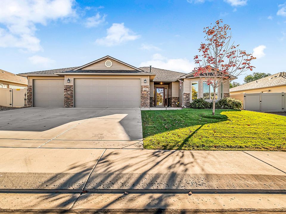 Beautiful Fruita home, open floor plan, oversize living room and primary bedroom. Added features include gas fireplace, covered patio, lush landscape, 3 car garage.