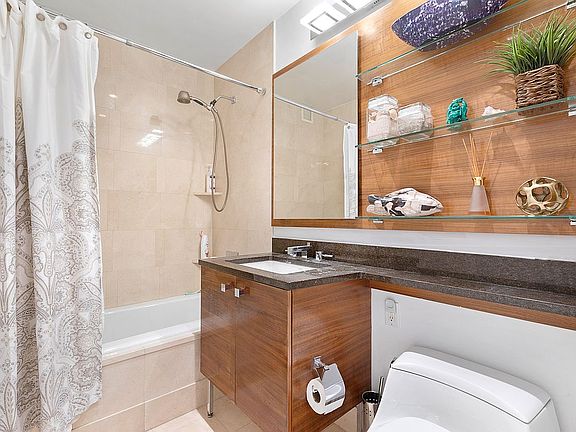 This residence features a beautiful living room with hardwood floors & oversized windows. The gourmet pass-through kitchen offers granite counters & stainless steel appliances. There is also a luxurious marble bath, generous closet space and in-unit washer/dryer within the apartment.