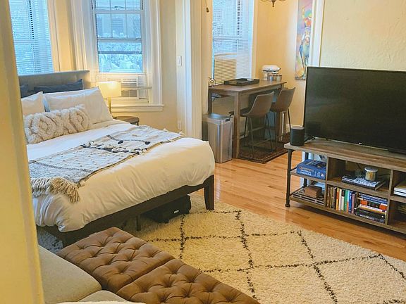 Spacious and higher first-floor studio overlooking the beautiful courtyard in Riverway Square at Longwood Medical area, filled with natural lights through east exposure of five windows. Gleaming newer hardwood floors, newer refrigerator, dining hall with chandelier, granite kitchen, large closets, and a sitting area that can fit in a desk. The building is well-maintained and is in a very desirable location. Enjoy the parks on Emerald Necklace in The Fenway. Minutes to the T, universities, Harvard Medical, and the hospitals in the area. On-street permit parking, laundry, and bike-rooms in the building. Available on March 1st. No pets or smoking. Owner pays for Heat, Hot Water.