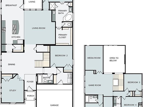 MLS# 4181394 - Built by Brohn Homes - Ready Now! ~ This home has it all! Two bedrooms and 2 full baths on the main floor, study, 2 story ceiling in living room with Fireplace, Media room and 2 full baths upstairs. You will love cooking in this gourmet kitchen with a gas cooktop, built in oven and microwave, large center island and beautiful gray cabinets. Enjoy overlooking the beautiful sodded back yard from the large covered patio. The primary bathroom feels very luxurious with a garden tub, separate shower with mud set tile floor, two vanity areas and a large walk-in closet. The Primary Bedroom is Extended with a Bay Window which adds extra light. Ready Now!