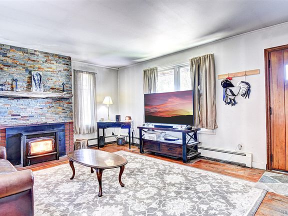 Charming Stone Ranch in a Prime Location. Enjoy convenient one-floor living in this well-maintained 2-bedroom, 1-bath ranch-style home featuring a beautiful full stone exterior. Set back on a .34-acre lot, the property offers privacy and a peaceful setting that feels like your own personal retreat. Inside, you’ll find new flooring throughout, a cozy fireplace, and charming built-in features that add character and functionality. The home also offers plenty of outdoor storage with multiple sheds and a detached garage, ideal for vehicles, tools, or hobbies. Centrally located on Route 17K, directly across from Stewart Airport, this property provides easy access to shopping, dining, and major highways—perfect for commuters or anyone seeking both comfort and convenience. A solid and inviting home with great potential and timeless appeal.