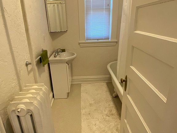 Upper Duplex apartment on London Road across from the Rose Garden. Beautiful two bedroom apartment with large living room, dining room, and and ample closet space. The unit has a lovely view of the Duluth Harbor from the picture window in the dining room. Located one block from a Super1, Ave hardware, and CVS pharmacy. New appliances and new paint throughout the Unit. Two blocks from the bus line. On street parking. Storage area in the basement. Free laundry area, Rent includes Water, Sewer, and Solid Waste and Recycling removal. Owner pays for Water, Sewer, Solid Waste and Recycling. Free laundry provided. Large storage unit located in the basement. Tenant is responsible for electricity and gas. No smoking within the building. Small dogs and cats allowed. Damage deposit due at signing. lease term is one year from occupancy.