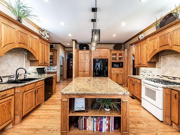 AMAZING custom brick estate home is perfectly sited for easy access to everything with this great location near Maple & 151st amidst mature tree rows. Note the yard is in process of being upgraded & will soon be a lush expanse of green. Welcoming expansive foyer opens to den/home office, gorgeous staircase, & lovely formal dining. The owner's suite overlooks the land & is conveniently located on the main floor plus there is a 2nd large bedroom w/adjoining bathroom on the opposite side of the home. Two additional bedrooms on the second floor + a 5th in the sunny basement so ample accommodations with enhanced privacy. WOWZA kitchen accommodates all the cooks & gatherings you want w/extensive space & storage including large walk-in pantry & butler's pantry. Note NEW premium stainless kitchen appliances are due to be installed soon! Soaring ceilings, stunning expansive hardwood flooring, tons of incredible custom cabinetry & built-ins that are exceptionally well built to exacting specifications, expansive walk-in closets in all bedrooms, ENTERTAINER'S delight family room & game room w/huge PARTY CENTRAL wet bar, solid surface countertops throughout, recent premium PELLA windows throughout, & much more! Super climate controlled with zoned HVAC & premium insulation. Further imagine the hobby or storage possibilities with 40x30 BRICK detached garage w/stairway to second floor expansion area & rough in for bathroom and HVAC PLUS 875 SF attached oversized 3+ garage. The BEST options here--privacy, space, quality, beauty & convenience. Desirable Goddard schools are just another bonus!