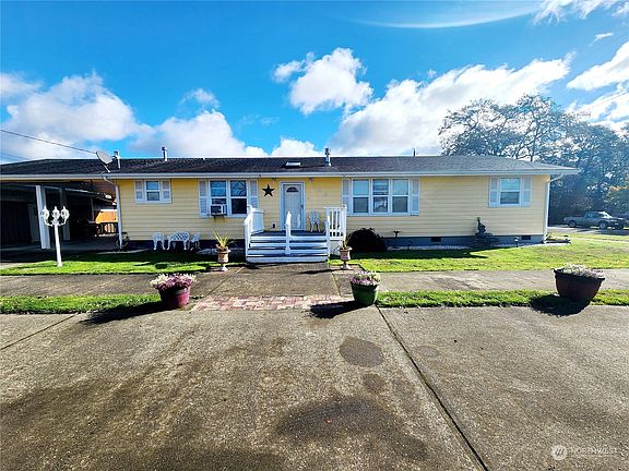 Welcome to your charming one story rambler in downtown Elma! Great location with easy access to the highway, and all amenities within walking distance for convenience. This 3 bed 2 bath home offers comfortable living plus plenty of space for hobbies and projects. Enjoy an open concept living space perfect for gatherings. Well-equipped kitchen is bright and airy, features ample counter & cabinet space with French doors to a covered deck. Bedrooms are all generously sized, with two conveniently located full baths, one being off the primary bedroom. A standout feature of this property is the expansive shop, ideal for projects, storage, parking, etc. Additionally the attached carport offers plenty of parking space. Must see!