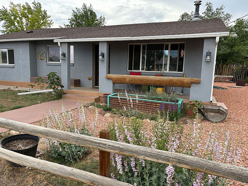 Beautiful home with porch view of Escalante canyon. 3 bedrooms, 2 full baths. Living room and kitchen have tile floors, plus wood burning stove and brand new induction stove; bedrooms are hardwood floor except for master (carpet). Stucco exterior. Lot features fenced backyard, a shed, garden plot, chicken coop, xerescaped with cacti, native flowers, and fruit trees. Well-kept and cozy. For more information, call or email Kevin: 585-259-4352, berendkevinm@gmail.com.