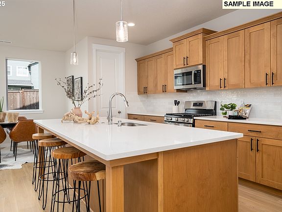 Complete in January 2026! Beautiful new 2336 sq ft floor plan with great room concept, dining nook, flex space, den & full bath on the main floor plus an extended primary suite and three additional bedrooms, two with walk-in closets on the second level. Home features a gas fireplace, 9ft ceilings on main, quartz countertops throughout, gas range, dining nook, large primary bedroom with walk-in closet & soaking tub. High efficiency heat pump with A/C, 65-gallon heat pump water heater, fencing, covered patio, front yard sod and irrigation included. Community features walking trails, green spaces, and park areas. Sample images - actual finishes and colors will vary. Other homes also available. PLEASE VISIT SALES OFFICE TO VIEW HOMES @ 117 S 87th Ave, Ridgefield, WA. Open daily 11-6.