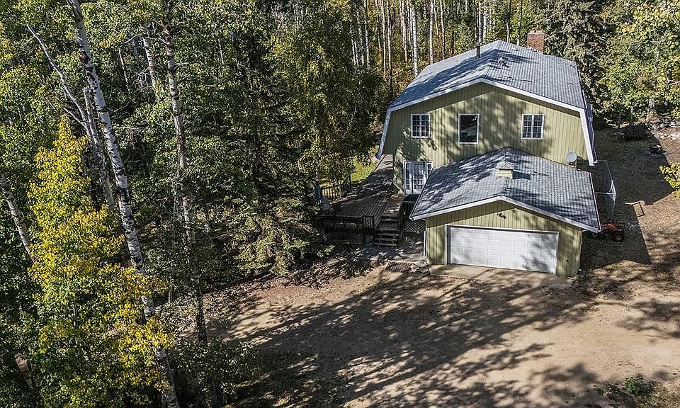 One of a kind opportunity for an acreage in the Summer Village of Birchcliff on the sunny side of Sylvan Lake! On pavement and steps away from the Lake sits 3.64 secluded acres nestled in mature trees with walking/quading trails. There is a one of a kind Charming 2672 sq foot home with a Double attached garage & Triple detached shop (complete with two 8' doors and one 10' door - ideal workshop or storage for your toys). The large country kitchen offers an abundance of countertop space and cabinets. The open concept has the dining room and kitchen looking onto the family room with gorgeous wood detailing. The large dining space is ideal for dinners with family and friends. It comes complete with the custom made wooden dining table. You'll enjoy the great views outside from the wall of windows in the family room. The wood burning fireplace is ideal for staying cozy on cold evenings. Plenty of space for your family to spread out as there is a living room with vaulted ceilings which also offers a second wood burning fireplace. There is a 3 piece bathroom on the main. You'll appreciate the hardwood flooring throughout most of the main floor and up the stairs to the upper bedroom evel. The home uniquely offers 4 bedrooms upstairs including the primary suite with a luxurious ensuite. 3 of the bedrooms have balconies. For your convenience there is a bedroom level bright laundry room. The basement is ideal for storage but also could be developed for your future needs. Peace and privacy are yours with the abundance of trees and private trails.The skys the limit with how youll enjoy the great outdoors. The property has a fire pit area and horseshoe pit. If you enjoy outdoor pursuits and you want to be close to the lake, this may be the Ideal property for your growing family or as a Lake getaway!
