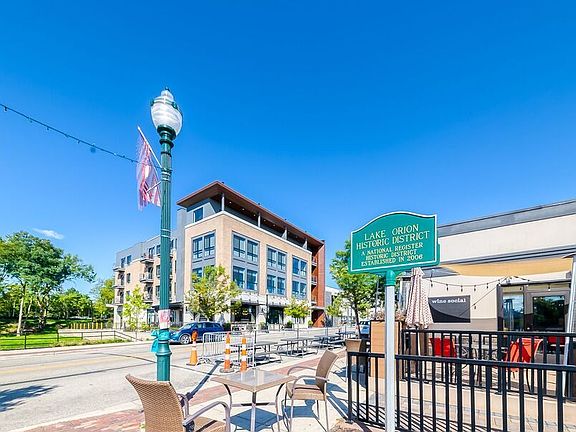 Stunning apartment community in Downtown Lake Orion offering luxury units. This unit is a private corner unit. Enter to beautiful open floor-plan. Large living room that opens to kitchen with granite countertops and stainless steel appliances. Master suite, laundry in-unit, and balcony off living room. Reserved parking spot. Enjoy Downtown life! Photos are of model units to showcase quality of units.
