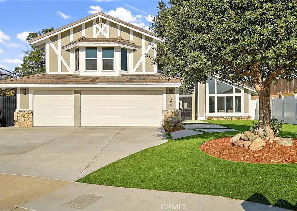 Discover the perfect blend of luxury and comfort in this spacious 6-bed, 3-bath, cul-de-sac home in the desirable Eagle Hills neighborhood! This home has been completely remodeled with a beautiful custom kitchen and updated bathrooms. The first floor has an open kitchen that connects to the family room, a formal living room that opens to the side yard and a guest bedroom and full bath. At the top of the stairs you'll find a stunning master bedroom with french doors, vaulted ceilings, a plaster fireplace, a huge master bathroom and a walk in closet. The huge, vaulted windows allow so much natural light in and give a full view of the backyard. The backyard features a sparkling pool and jacuzzi and huge grassy side yard, perfect for entertaining! The lot is about 14,000 sq ft and the location is perfect with so much privacy and no immediate neighbors behind. The neighborhood is home to the Brea Christmas Lights where people from all over come to see the beautiful holiday lights! Surrounded by shopping, entertainment and amazing schools, this is the perfect place to call home!