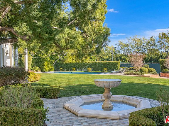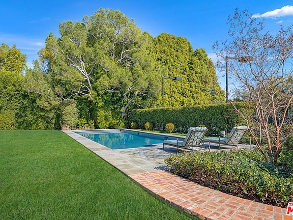 A stunning white-bricked Traditional estate beautifully situated behind tall iron gates on one of the finest streets in the World. Situated on over an acre of spectacular grounds with rolling lawns and beautiful gardens. There are countless amenities and numerous areas for indoor/outdoor entertainment, including a wonderful swimming pool, championship sized tennis court, outdoor living room/loggia, and much more. Beautiful two-story entry with classic "Old Hollywood" curved staircase, large formal living room, screening room/theater, paneled office, gourmet kitchen with center island opens to family room, master suite with his & hers baths, comprised of 7 bedrooms and 8 baths, separate guest suite, gym. An incredible value. Shown to pre-qualified clients only.
