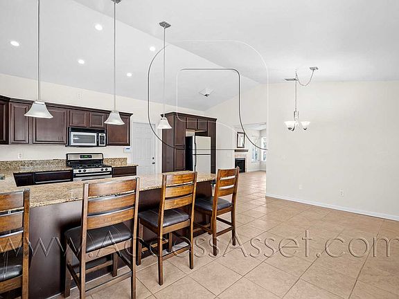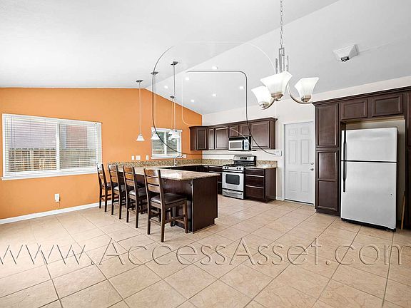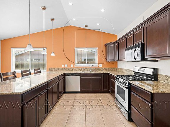 Situated on an oversized lot with RV access, this 3 Bed / 2 Bath corner home is located in a very desirable Lake Elsinore neighborhood. This spacious and inviting home boasts beautiful, oversized tile flooring throughout the main living areas, and warm and inviting beautiful hardwood flooring in all the bedrooms. Enter into the living room, complete with a faux fireplace with tile surround and a custom wood mantel, where relaxing evenings or weekend gatherings await. The fabulously remodeled dream kitchen with cathedral ceilings catches your eye, featuring beautiful granite countertops, a huge peninsula with a breakfast bar, two large pantry cabinets, recessed lighting, and designer pendant lights illuminating the peninsula. Stainless steel appliances, including a freestanding stove, oven, microwave-hood, refrigerator, and dishwasher, will make your move-in easy and convenient. The open floor plan flows seamlessly to the family room/dining room with tons of natural light, creating the perfect space for meals and entertaining. A sliding glass door opens to the patio and huge yard beyond, creating a feeling of indoor/outdoor living. As you enter through the hallway, the bedrooms feel warm and inviting. There are two guest bedrooms and a full hallway bathroom with a tub/shower combination and a new single bowl vanity. A large floor-to-ceiling linen closet can be found in the hallway. The Master en suite offers plenty of natural light, a wall of closets, and access to the back patio through sliding glass door. The oversized, oval soaking tub with shower and the commode are set off from the dressing and vanity area. The beautiful single bowl vanity is topped by a huge mirror. The home has central heat and air conditioning and ceiling fans in bedrooms and the living room. The home also includes a large 2-car garage with direct access, tons of custom cabinetry, a washer and dryer, and provides secure parking and additional storage. This home is nestled in a quiet residential neighborhood. It is close to schools, shopping, dining, and provides easy access to the 15 Freeway perfect for commuters. Minutes from Lake Elsinore's recreational activities and local parks, this home blends comfort, location, and style. Come see it for yourself before it's gone! SMALL Pet/Dogs are considered solely at the discretion of the homeowner and an additional monthly increase in rent of $45/month per pet may apply. Sorry, NO pet Cats allowed on this property. Photos displayed for this property are deemed reliable, but are not a guaranteed representation of the subject property. Renters must obtain a liability insurance policy as a requirement of tenancy. Twelve (12) month lease term minimum unless otherwise stated. Security deposit required prior to move in. Minimum security deposit equal to one (1) months rent. Due to restrictions in California regarding increased security deposits, Landlord reserves the right to decline an applicant at the advertised rental rate and offer a higher rental rate to offset any perceived or actual risk associated with an applicant's household eligibility.