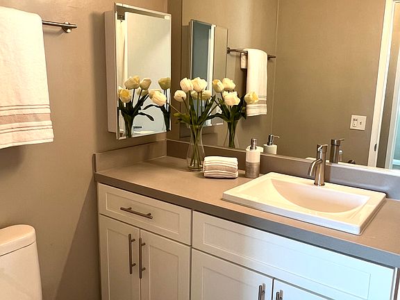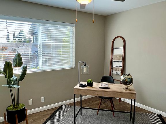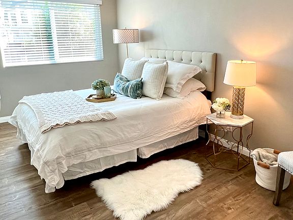 Enjoy the renovated kitchen and bath with shaker cabinets, quartz counters, subway tile, brushed nickel faucets and luxury vinyl wood plank flooring. Stainless steel kitchen appliances include stainless sink, fridge, microwave, range/oven, and garbage disposal. Upgraded windows and coverings, ceiling fans, light fixtures, A/Cs and USB outlets for your convenience. Shared laundry, 1 gated carport space. Street parking available. Gated 18-unit property with security cameras and controlled access. Unit is UNFURNISHED. Photos of amenities may vary by unit. No elevator. Utilities include water and trash. No