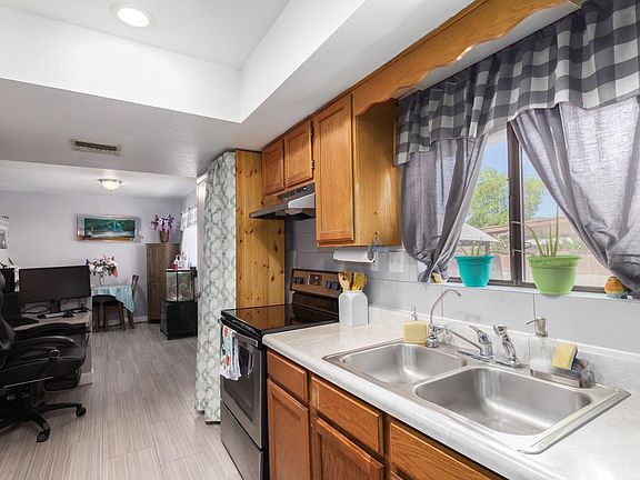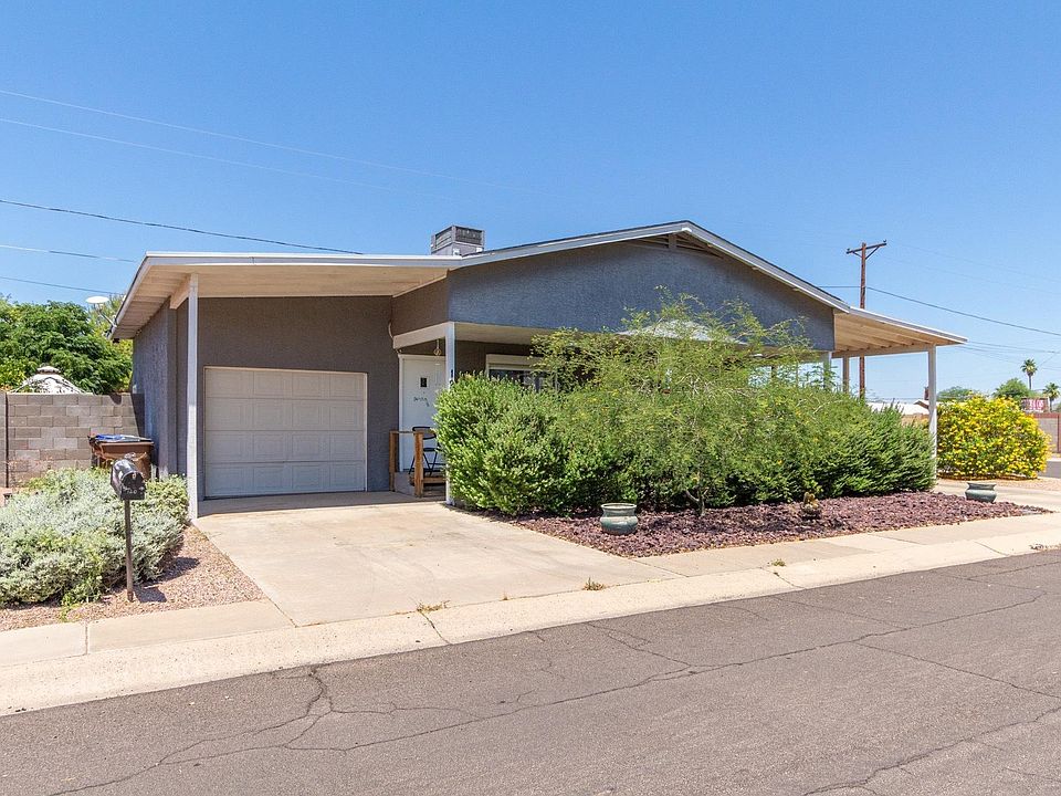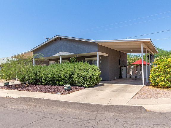 Come see this beautiful, well-kept 1 bed, 1 bath home close to shopping with easy access to the US 60 highway. (This home has the possibility of becoming a 2 bedroom home. Call for further details.). There is plenty of parking which includes a one car garage (with loft storage), covered RV port as well as an additional covered driveway space. Enter into an open concept family and dining room with neutral colored flooring and paint. The kitchen will definitely impress with its abundance of light, oak cabinets and countertop space. Off the kitchen you will find a fenced in patio with vegetable garden planters and plenty of space for relaxing and entertaining.
