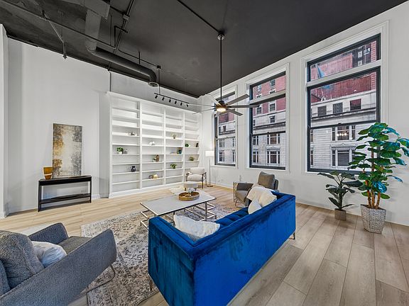 Location. Luxury. Privacy. Convenience: don't miss this rare opportunity to own an expansive, modern, turn-key residence offering a private in-unit elevator ~ a level of exclusivity and scale almost impossible to find in the Loop. Perfectly positioned on iconic State Street, this home delivers the best of city living with unmatched accessibility. Occupying the entire 4th floor, this 2,300 sq. ft. lofted residence features 4 bedrooms, 2 full baths, and soaring 14-foot ceilings throughout a dramatic open-concept layout. Every inch has been meticulously reimagined with premium finishes and a sophisticated modern design that beautifully complements the building's historic architecture. The sun-drenched main living space makes a bold impression anchored by a full wall of custom shelving and a stunning line of oversized windows that flood the interior with natural light. Dramatic corner exposures frame iconic views of the Palmer House and the vibrant Loop streetscape below. The chef's kitchen is draped in quartz with a striking waterfall island that offers abundant storage and seating. GE Profile appliances, including a beverage fridge, complete the space ideal for both culinary creations and entertaining. The primary suite is a private, spa-like retreat featuring a custom walk-in closet with a center island, plus an additional closet for even more storage. The ensuite bath exudes luxury with a double vanity, walk-in shower, and a freestanding soaking tub for ultimate relaxation. Three additional bedrooms, each with generous closets, offer flexible use for guests, office, or creative studio. Additional highlights include new wide-plank luxury flooring throughout, a premium full-size Whirlpool washer and dryer, and an oversized private storage space on the lower level. Enjoy effortless city living with deeded valet garage parking at 8 W. Monroe and unbeatable access to CTA buses, the Red Line, and all Loop "L" stops just outside your door.
