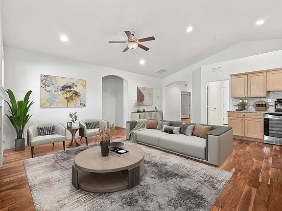 This beautifully designed home offers the perfect blend of comfort and sophistication. The spacious open-concept layout centers around a chef's kitchen, featuring abundant cabinetry, expansive counter space, stainless-steel appliances, a walk-in pantry, bar seating, and a wine fridgeideal for entertaining and everyday living.