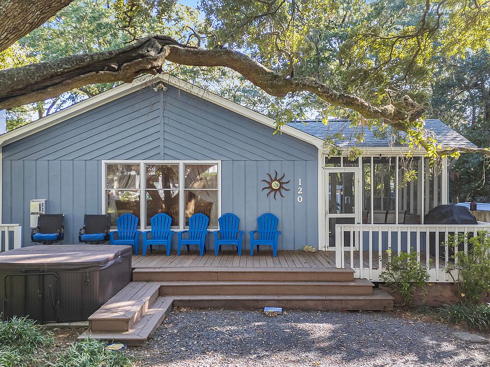 Step into your own slice of paradise with a heated, 6-foot deep, saltwater pool featuring a new pump (2024), propane heater (2021), and a five-section enclosure for year-round enjoyment. Just steps away, a saltwater hot tub invites you to soak and unwind after a day on the sand. The oversized deck sets the scene for sunset cocktails and relaxed gatherings under the trees.