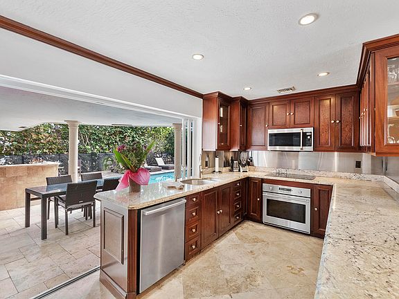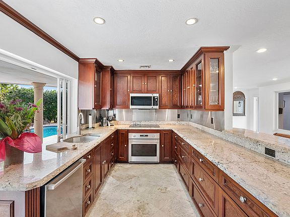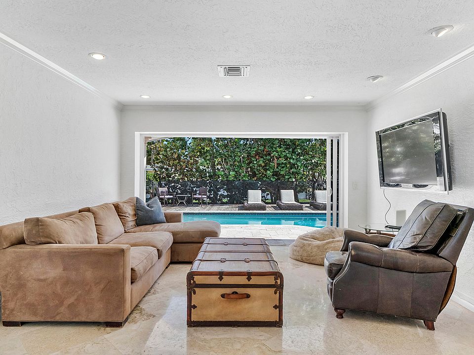 Private poolOpen floor planWaterfront homeOverlooking the waterPocket hurricane-impact sliding doorsSeamless indoor-outdoor living
