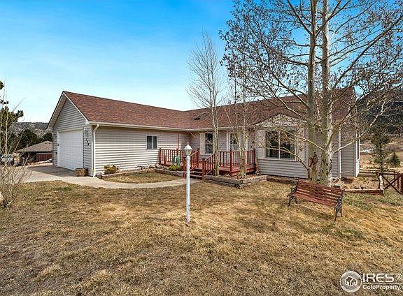 Beautiful and rare 2.5 acre horse property in Estes Park without HOA. This ranch style home with walkout basement with spectacular-unobstructed mountain views is a rare gem in Estes Park. There are many upgrades to be mentioned. Property comes with outbuilding/barn and storage shed with Electric. Easy access to Highway 7 and Homer-Ross riding trail which has easy horse access to Rocky Mountain National Park. There is a natural seasonal spring on property as well. Mountain living at its best!