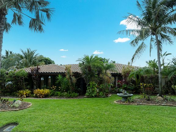 RIVERFRONT tropical paradise with HUGE enclosed pool & boat lift and an oversized 2 car garage in Cocoa Beach. This beautiful 4-bedroom, 3-bathroom home, with 3000 sqft of living space will make you feel like you are on vacation year-round. The home is Bali inspired; you will be greeted by a lush garden with water features at the entrance. Main living area and enclosed patio with sliders that open to the pool area. Large primary bedroom has an updated bathroom w/ shower & tub, bamboo panels on ceiling and walk-in closet. The large enclosed pool area with pavers is a true retreat perfect for relaxing. Back yard landscaping includes a fountain, a variety of orchids, colorful plumeria trees, 2 mango trees, palms and more. Kitchen w/lots of storage, tile counters & wood cabinets, induction stove top & double oven. Renovated decorative fireplace in 2nd living area. Solarium room perfect for an office. Windows are impact or have roll down hurricane shutters. Tile Roof.