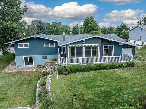Beautiful ranch home - Spacious and in a Great Location, near the golf course and hospital. This 3 bedroom/3 bath home offers over 2,400 sq ft on the main level and over 1,400 sq ft on the lower level. The large owner’s suite has an attached bath with a jetted tub and walk-in shower. Enjoy entertaining family and friends in the large living room that has a vaulted ceiling and a gas fireplace or in the family room where there is a wood burning stove. Relax outdoors on the large wrap around deck that has a retractable awning. A storage area or work shop area is next to the 2 stall garage. Recent updates are new sliding glass doors, tiling and sump pump in the basement.