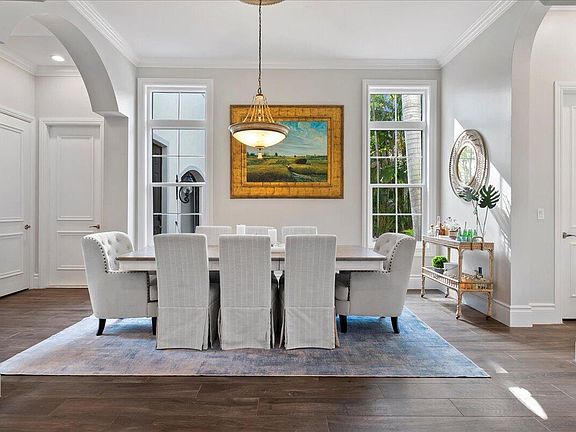 Experience true luxury in this fully renovated, like new home in Valencia at Abacoa. The fully custom, elegant mediterranean home features a .61 acre lot twice the size as others with outdoor oasis artfully landscaped to create a private sanctuary in paradise! Designer choices in this stunning home set it apart from the rest! The sun drenched main level boasts a just completed newly renovated chef's kitchen complete with a walk-in pantry, full-extension and slow-close cabinetry, 3 inch quartz surfaces, and Wolf stainless steel appliances with 4 large pull out refrigerator drawers. Freshly painted upgraded mill work and interior walls. New Roof and Lifetime warrantied PGT Impact Doors and Windows. The primary bedroom suite sits just off the living room and offers cathedral ceiling and custom moulding throughout leading into a spa like master bath complete with oversized mosaic tiled shower, soaking tub and dual custom cabinet vanities. Richly appointed dining room and sitting room are beautifully decorated and finished with custom window treatments. 4 sizable Guest Bedrooms are newly painted in a neutral palette and are filled with natural light.