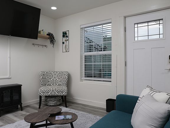 Enjoy the privacy of your own space, in a light and bright new ADU. Enjoy cooking in the full kitchen, with dining space and a dedicated work station. The cute and cozy living room will have you feeling right at home. A full closet and under the bed drawers provides plenty of storage space. Refresh with a luxurious rain shower head in the custom tiled shower, along with a full sized in unit washer and dryer. One block to downtown Colfax and 3 minutes from I-80, this location is hard to beat!