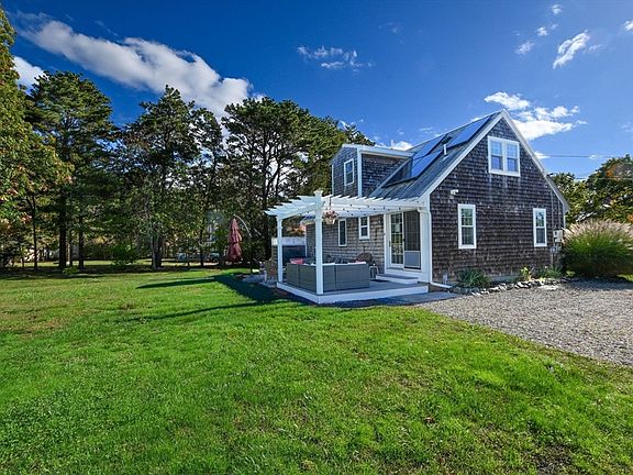 This beautifully updated 4-bedroom, 2-bath home offers modern comfort and style throughout. Enjoy a brand-new kitchen, bathrooms, flooring, windows, composite deck, and roof. Leased solar panels enhance energy efficiency, while the finished basement features a large built-in closet and direct laundry access. The spacious yard, circular driveway, and professionally landscaped front yard are perfect for outdoor living. A large detached garage with electricity provides ample storage for tools, equipment, and recreational gear. Don't miss the Cape Cod essential outdoor shower!