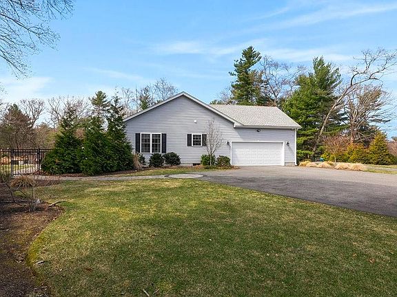 Immaculate Ranch Home on 2.4 Private Acres Overlooks Golf Course~ Welcome to easy living in this stunning single-level home. As you enter this beautifully maintained home from the quaint front porch the interior features a thoughtful open floor plan with cathedral ceilings, split-bedroom layout, distressed oak hardwood flooring, granite kitchen with large island, white shaker cabinetry and premium stainless appliances. The primary en-suite is a retreat with tray ceilings, walk-in closet and elegant bathroom. Two additional bedrooms are located on the opposite side of the home~ Enjoy additional living space in the finished lower level, currently set up as a home office, an expansive gym and ample storage. The main living area features oversized sliders leading to a 36 ft Trex deck to the sprawling yard, complete with a stone patio and custom stone fire pit perfect for entertaining or peaceful evenings under the stars! Additional highlights include laundry on the main level, central AC, security system with cameras and an attached two-car garage~ All ideally located minutes to local restaurants, shopping and major commuter routes, including TF Green International Airport (15 min), Wickford Train Station (5 min) and only 5 miles to Wickford Village & waterfront or Main Street East Greenwich. Nearby Quonset Business Park and General Dynamics EB make this a perfect location for professionals~ All this is just 30 minutes to the best pristine beaches Rhode Island is known for!
