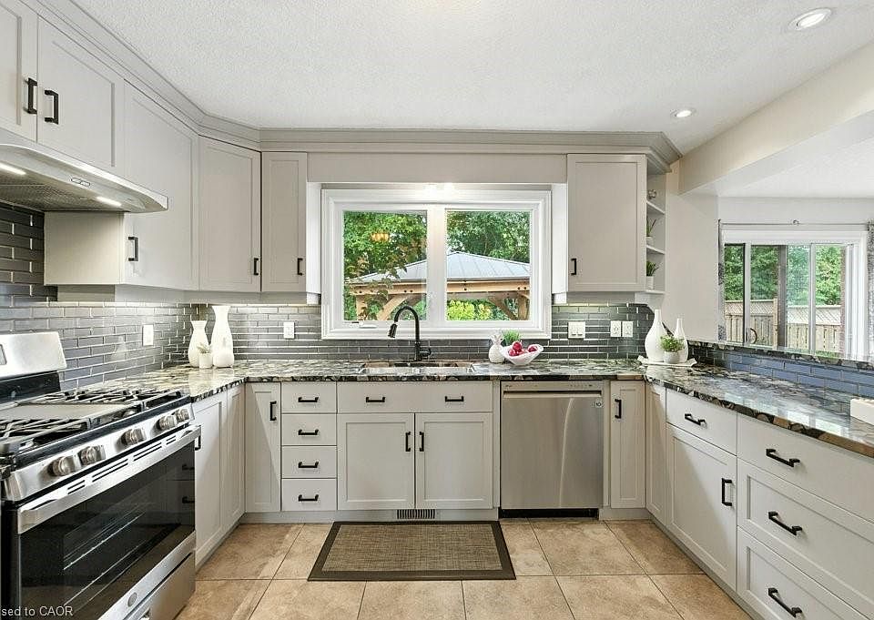 Welcome to 120 Spencer Dr. This property is perfect for a growing family, it offers 4+1 bedrooms, 4 baths and finished from top to bottom. A Private Retreat Surrounded by Nature. Tucked away in a desirable neighbourhood, this two-story detached home backs onto scenic walking trails and close a park, offering privacy with convenience. Tall trees, colourful gardens, and professional landscaping create a peaceful setting perfect for families who love both indoor comfort and outdoor living. The Exterior offers: A double driveway and double car garage with entry to main floor. The backyard is a true retreat - a gazebo and lush perennial gardens - ideal for entertaining or enjoying quiet evenings outdoors. The Main Floor Highlights: Step into a spacious foyer leading to an open-concept living and dining room with hardwood floors. The modern kitchen boasts high-quality riverbed granite countertops, a raised breakfast bar, and a bright breakfast area with walkout to the backyard. The kitchen flows into the family room with a cozy fireplace. A guest bath, laundry room and plenty of natural light complete the main level. The modern staircase leads to the second level with the primary suite is a private escape with its own fireplace, massive walk-in closet, and spa-like ensuite with soaker tub, glass shower, double vanity, and private water closet. Three additional bedrooms include built-in closets and share a well-appointed main bathroom.The lower level - Finished Basement adds versatile living space with a large rec room, guest bedroom or in-law suite, and a full 3-piece bath. There’s room for a home office, workout area, or playroom, plus ample storage. This property blends space, privacy, and modern living in a family-friendly location. Whether gathering by the fireplace, entertaining in the backyard, or enjoying quiet walks on nearby trails, 120 Spencer Drive is a home to truly enjoy. Close to Fergus and Guelph amenities, schools, shopping, and transit.