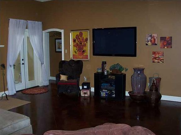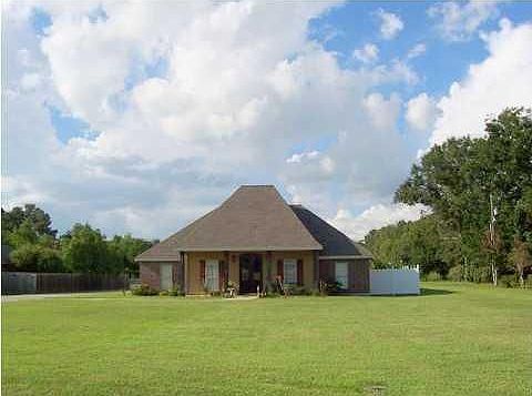 Acadian style home on almost 2 acres with a saltwater pool & pond! Granite counters, stained & scored concrete floors, varied ceiling heights, fireplace, stainless appliances, two hot water tanks, & tons of storage! The floor plan offers open access to the covered v-groove patio & pool area. Kitchen has custom built white cabinets with fleur d les hardware & breakfast room. The den has 11 ft ceilings & triple crown, a fireplace, double French doors to the patio & flat screen mount on the wall. The master bedroom and bath are separate from the other two bedrooms & offers French doors to the patio. The master bath has a whirlpool tub & separate tiled shower & double sinks. The patio area leads to the pool/hot tub along with separate wrought iron gates to the pool & pond. The pond has a filtration system with fountains & an island. Check out what country living at its finest is all about. A rare find in this price range!!