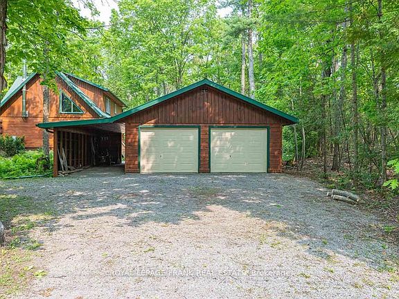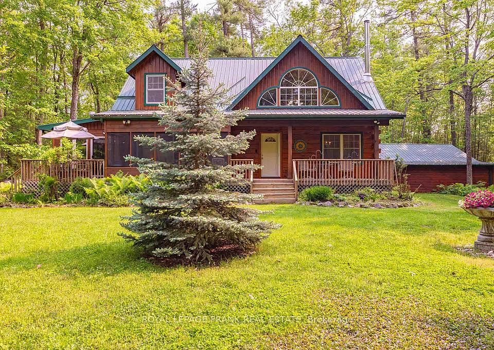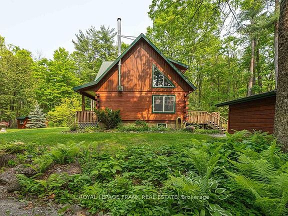 Well maintained home nestled on 1.5 acre treed lot a short walk to a public access on Pigeon Lake for great swimming. You won't be disappointed by this classic rustic log home featuring 3 bedrooms, 2.5 baths, stunning vaulted ceilings, open concept with a cozy wood stove which is WETT certified. The 4-season sunroom with propane stove overlooks a private treed yard. The updated kitchen with alderwood cabinets and soapstone counters blends perfectly with the open concept living area. The main level bedroom is located across from a newly renovated bathroom. The second floor has a large primary suite with a 5 pc ensuite bathroom plus an office area open to the floor below. The lower level is fully finished with a large family room and plenty of storage. Screened in porch, large deck, perennial gardens and an oversized double car garage with carport. Situated on a township road, and a school bus route, close to the town of Buckhorn.