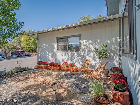 Welcome to this recently updated 2-bed, 2-bath home with a 2-car garage—perfectly situated just a short stroll from the Truckee River. Step inside to soaring vaulted ceilings, an open living area, and a spacious kitchen ideal for hosting friends after a mountain bike ride or cozying up after a day on the slopes. Recent updates make this home move-in ready, including a newer roof, HVAC system, and luxury vinyl plank flooring. The fully landscaped front, side, and backyard showcase thoughtful upgrades like paver walkways and bistro patio, drip irrigation throughout the garden beds, fresh mulch and weed block, restored and stained fencing, and new exterior lighting. Inside, enjoy a beautifully remodeled bathroom complete with a marble-top vanity, new tub and shower insert with marble tile surround, and all-new fixtures. The laundry room features new LVP flooring, updated lighting, and redone venting for efficiency. Additional touches include new cabinet hardware and trim details throughout, and two new steel side doors leading into the garage and laundry room. The garage even includes added overhead storage for your gear—ready for all your Sierra adventures. Nestled in the heart of Verdi, this home offers easy access to countless walking and hiking trails, with the Truckee River and mountain recreation just steps away. Come experience the charm of Verdi living with modern updates and mountain vibes. And if you have the time, take a quick walk down to the river to enjoy its beauty and how close and accessible it is!