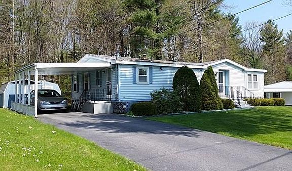 Immaculate double wide manufactured home with well manicured lawn abutting the woods. This home offers and easy flowing floor plan with 3 bedrooms and 2 full baths. You love the sunny rooms, cathedral ceilings, spacious master bedroom with private bath, eat in kitchen with lots of cabinets and counter space. Enjoy the benefits of many up dates, a carport and 2 sheds for an abundance of storage. If you are looking for a nice double wide manufactured home in a established 55+ community you will not want to miss this one.