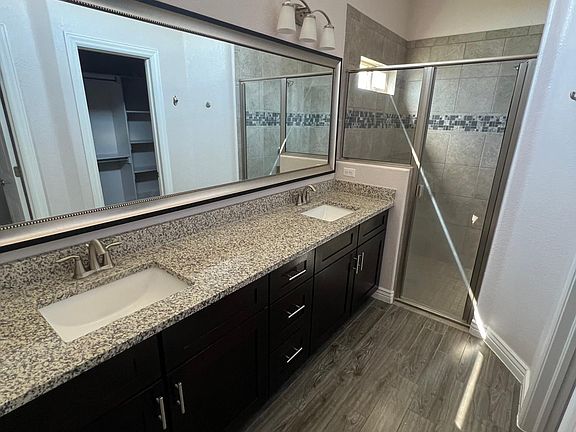 Modern Luxury at it's finest! Located in a cozy new home subdivision in Santa Teresa, NM with it's own community park with a gazebo! Bright open floorplan with a Massive Gourmet Kitchen! Huge backyard with extra high fence for privacy and even a custom front gated courtyard for more security! Soothing colors throughout with all tile except bedrooms have a plush cut berber carpeting. Master suite features a large walk-in shower, private commode, double sinks, granite vanity and spacious walk-in closet. Secondary bedrooms are also a good size, all rooms have ceiling fans. Hall bath also has granite countertops & counter height vanity. Cool refrigerated air and stainless steel appliances. Spacious 2-car garage with insulated door & openers.