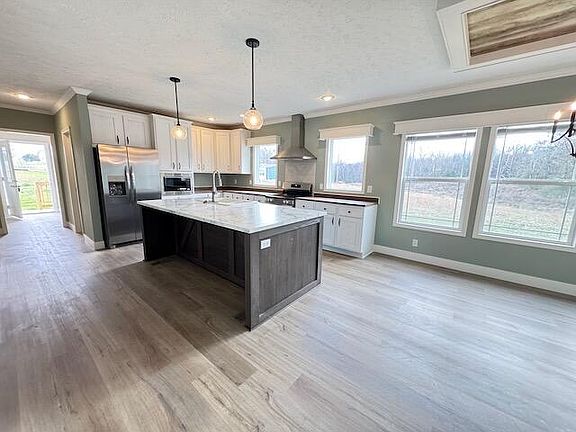 Large craftsman/farmhouse style home on almost an acre with split bedroom design, sheet rock walls, 9ft ceilings. Luxury abounds in the massive home from the entrance hall with craftsman style front door and coat area to the well appointed Kitchen/ Dining area with trey ceiling & huge center island with SS European hood and appliances, apron sink & pantry. Built in entertainment center in living/family room with exposed farmhouse style beams. Huge master bedroom with oversized walk in closet and ensuite bathroom with double vanities, double walk in shower, soaking tub and linen closet. 2 additional guest bedrooms with jack and jill guest bathroom. Additional half bath in hallway leading to immense laundry/mud room with built in shelving, laundry sink and pantry. New rear and front decks and plenty of room to roam. Home eligible for 100% financing with USDA or VA loan, 96.5% financing with FHA loan, also possible seller financing.