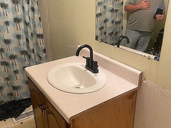 Very nice lot, biggest on the neighborhood. Has a 1 car garage and a small shed in the backyard. Very nice neighbors. Has a wood burning fireplace. Very sturdy mobile home. Will need some repairs. Flooring needs replaced (removed all carpet). The main bathroom shower needs replaced. Faucets on the garden tub need replaced. Front and Back porch need a little repaired. A few outlets need fixed. Septic may need pumped.