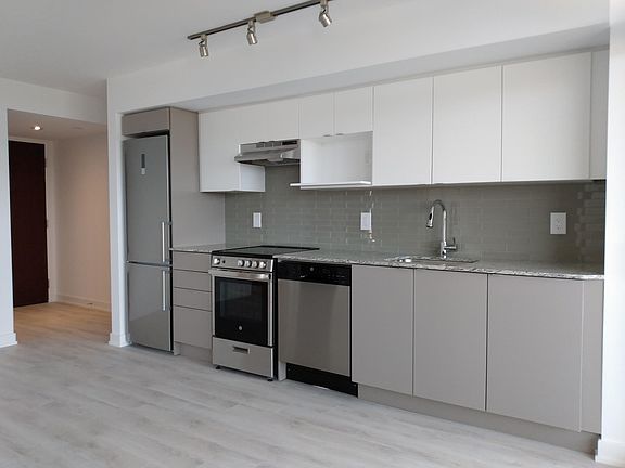 BRAND NEW condo - steps to Yorkdale Subway Stn Live comfortably in a 2-bedroom BRAND NEW condo right by the Yorkdale shopping centre. CORNER suite filled with natural light, LARGE living / dining area w/FLOOR-TO-CEILING windows & PRIVATE oversized balcony. Warm WIDE-PLANK WOOD laminate flooring throughout foyers, kitchens, living & dining areas. B/I SLEEK OPEN-CONCEPT kitchen w/GRANITE countertop & GLASS backsplash. PORCELAIN TILE flooring in the bathroom. SPACIOUS two bedrooms w/WINDOWS. Enjoy the COMFORT, CONCEPTUAL DESIGN, UTMOST QUALITY & STYLE of beautiful urban living. MUST BE SEEN to be appreciated! Extras: Fantastic Location!! TTC & Subway Line & the Yorkdale Mall at the Door Steps, Minutes To York U, U of T, Ryerson & Dining, Shopping & Recreation. Individually Controlled Heating & Air-Conditioning W/D in the Suite One Underground Parking & One Locker Amenities: 24 Hrs Security, Gym, Party Rm, Rooftop Patio, Guest Suites, Visitor parking, Bicycle racks No smoking and no pets please (caged pets are ok) Available: Sep 1, 2021 or Immediately Owner pays for water & gas. Renter pays for hydro. 1 underground parking & 1 locker included. First & last month payments due on the day of signing. Background check required. No smoking. No pets please, caged animals are ok.