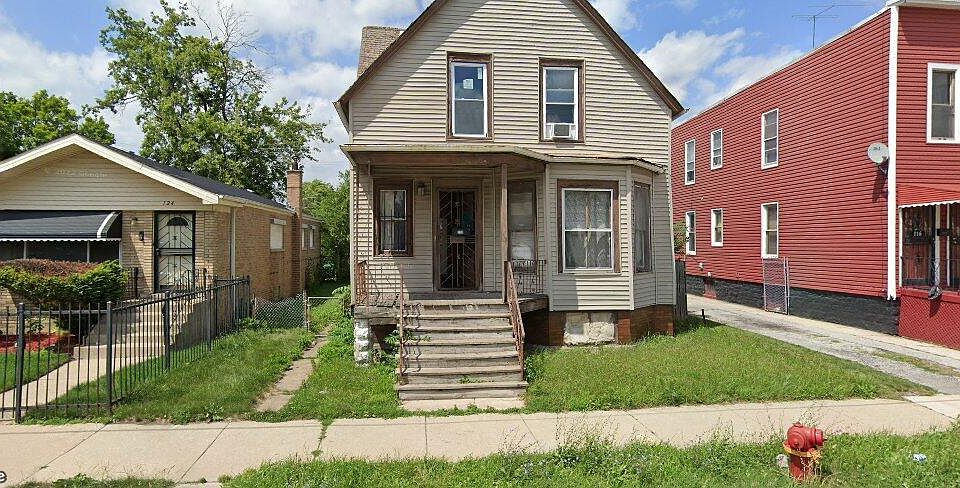 Frame sided cape cod straddling Roseland and West Pullman areas of Chi. Four bedrooms set up for individual rentals. Sold as is. No survey provided.