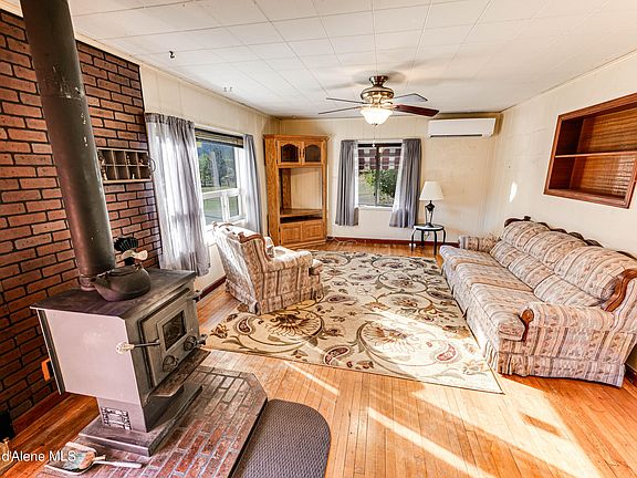 A charming home in the quaint town of Silverton, ID! This inviting 2-bed, 1-bath home spans 1120 sq ft on the main floor, with a matching 1120 sq ft basement, perfect for a rec room, gym, or storage. Stay comfortable year-round with an efficient ductless mini-split system or throw some logs on the fire, with the wood stove in the living room. The property shines with a detached garage and two carports for your vehicles or gear, plus a relaxing hot tub to unwind after a day of adventure. A washer, dryer, two refrigerators, and a chest freezer are included.